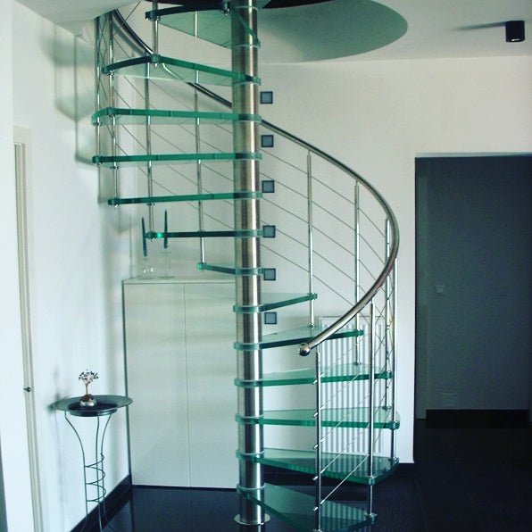 Preobrazite svoj prostor s našim upečatljivim spiralnim stepenicama, izrađenim od bešavne mješavine stakla i nehrđajućeg čelika. Ovaj zadivljujući dizajn stubišta kombinira elegantan, moderan izgled nehrđajućeg čelika s prozirnošću i elegancijom stakla, stvarajući središnji dio koji uljepšava svaki suvremeni interijer. Okvir od nehrđajućeg čelika nudi snagu i izdržljivost, osiguravajući sigurnost i stabilnost dok se penjete ili spuštate. Staklena gazišta i ograde donose osjećaj lakoće i sofisticiranosti, dopuštajući prirodnom svjetlu da teče i osvjetljava vaš prostor. Idealne za domove, urede ili komercijalne prostore, ove spiralne stepenice jednako su funkcionalne koliko i vizualno impresivne. Poboljšajte svoj dizajn interijera stubištem koje savršeno uravnotežuje estetiku i strukturalni integritet.